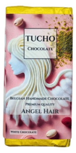 Chocolate blanco belga con cabello de ángel. Relleno ligero y esponjoso.