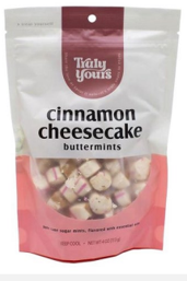 Caramelos tipo buttermints con sabor a cheesecake de canela.